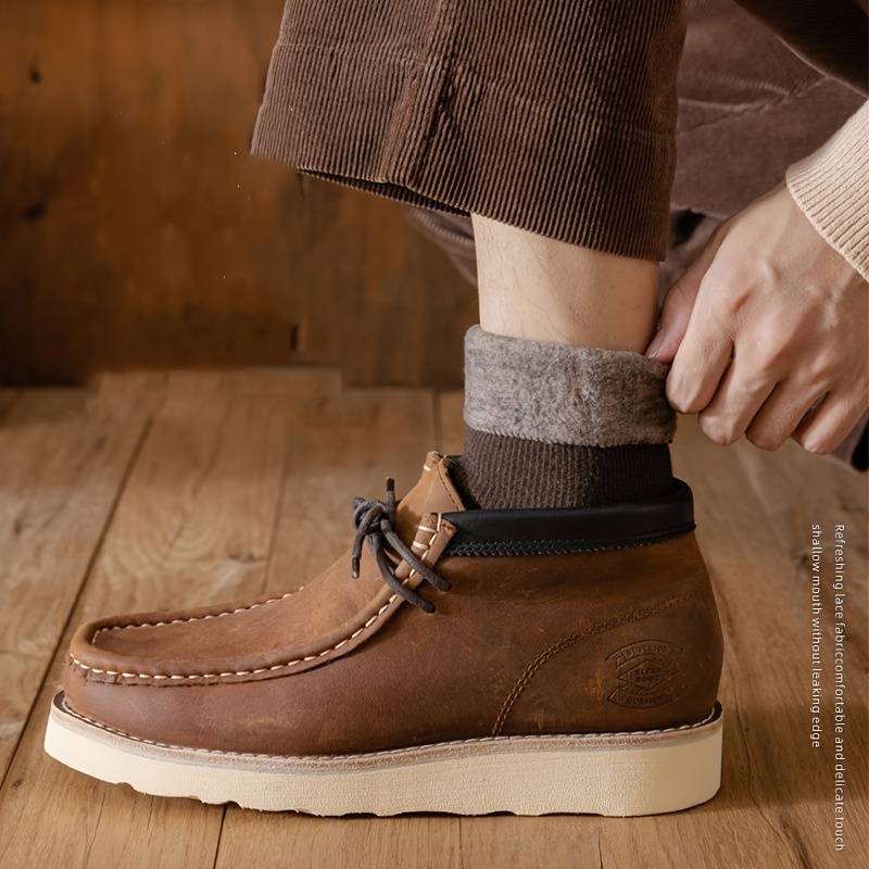 Men's Winter Soft Thick Warm thermal socks are made of polyester, designed with velvet pile lining, skin-friendly and breathable, moisture-wicking and odor-fighting, soft to touch and comfortable to wear.