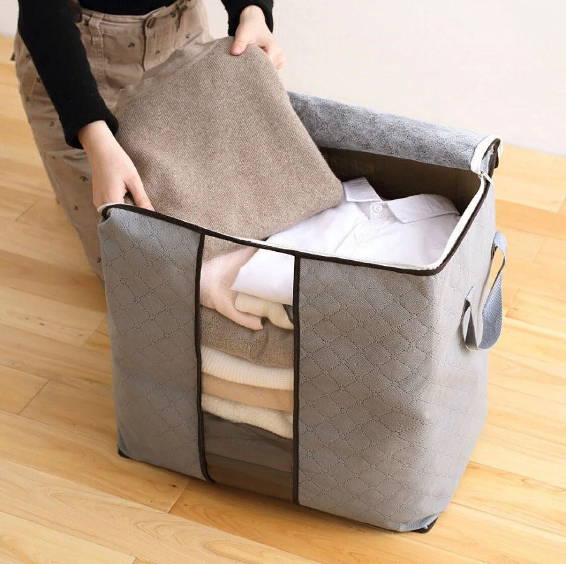 - Foldability: Can be folded when not in use, when filled with material the bag can be stored umder the bed as per its size. It collapses flat for saving precious storage spaceMultiple uses the bag can be kept in your storage beds, closets, wardrobes, storage cabinets. it maximizes your storage space and is perfect for those not-so-frequently used items in your household