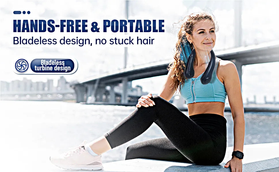 Portable Neck Fan - 3 Speed Rechargeable Bladeless Neck Fan, Adjustable Personal Neck Fan For Women and Men Modern Design, Great Cooling Fan For Travel, Outdoors and Sports